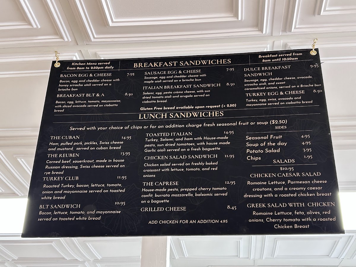 Dulce Bakery and Cafe Menu